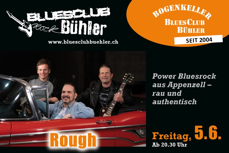 Gitarre, Bass, Drums – die klassische Besetzung für rauen Rock – eben Rough. Die Band kommt mit kraftvoller und leidenschaftlicher Rockmusik in den Bogenkeller. Sie hat aber auch blueslastige Songs im Repertoire, wodurch ein interessanter Mix mit Musik ohne Schnickschack entsteht. Durch viele Auftritte am Postplatz-Openair Appenzell sind Rough in unserer Gegend keine Unbekannten und vor elf Jahren spielten sie letztmals im Bogenkeller.